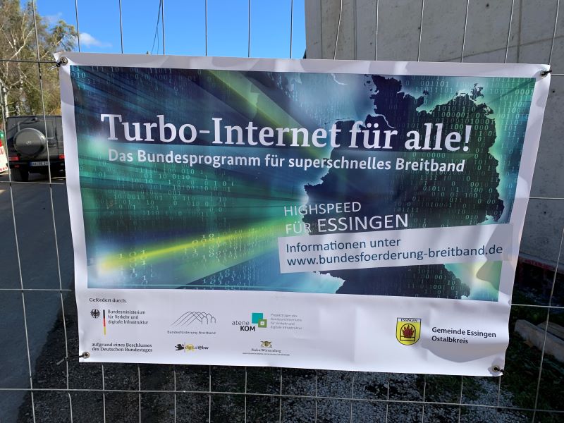 Unterstützung durch den Bund und das Land: Die Gemeinde Essingen ist sehr froh darüber, dieses erste Projekt der Weißen Flecken mit der Unterstützung durch den Bund und das Land ausführen zu dürfen und freut sich darauf, die weiteren Projekte, welche im Zusammenhang mit dem Ausbau der weißen Flecken stehen, mit einer starken Unterstützung umsetzen zu können.
