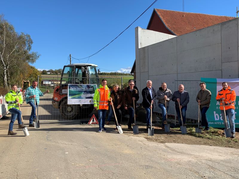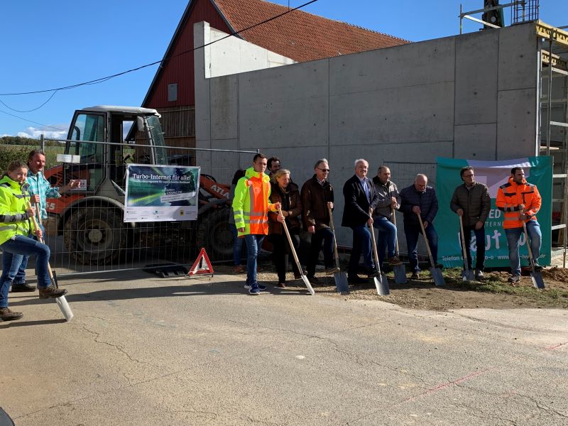 Projektfortschritt: Der Spatenstich erfolgte am 21.10.2021. Die ausführende Firma wird Firma Ebert aus Pommertsweiler sein. Sie ist in der Region sehr bekannt und kann dieses Projekt positiv umsetzen und begleiten. Außerdem bekommen wir volle Unterstützung der Stadtlandingenieure, die das Projekt von Anfang bis Ende begleiten und in Zusammenarbeit mit dem Ing.Büro Geodata, welches den Auftrag für die Planung der weißen Flecken erhalten hat, begleiten und umsetzen.